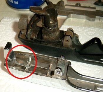 Da, wie schon gesagt, die komplette Mechanik nicht in den Golf1 Türgriff passt, muss man den Kipphebel vom Rest trennen [Bilder 2 und 3].