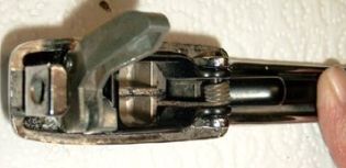 Wenn der Epoxy-Kleber ausgehärtet ist setzt man noch die Feder und einen neuen Holstift ein und kann den Griff mal testen [Bild8].
