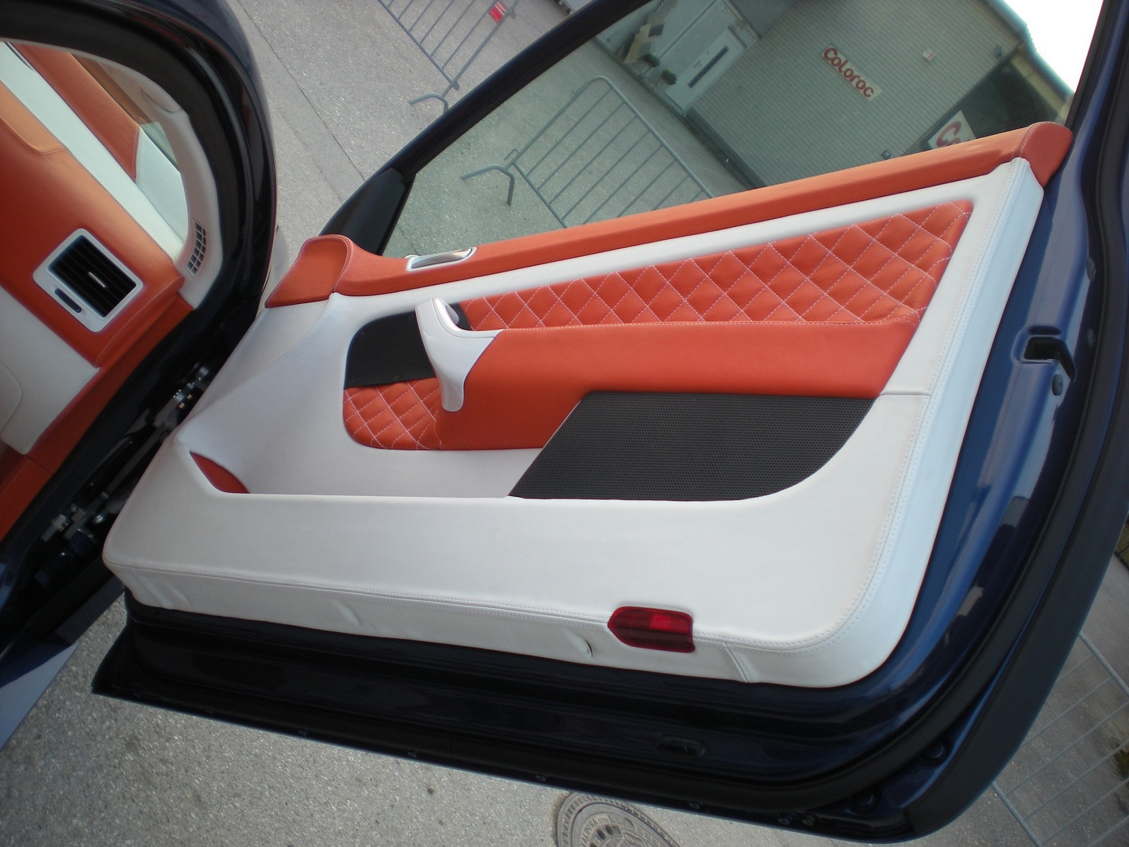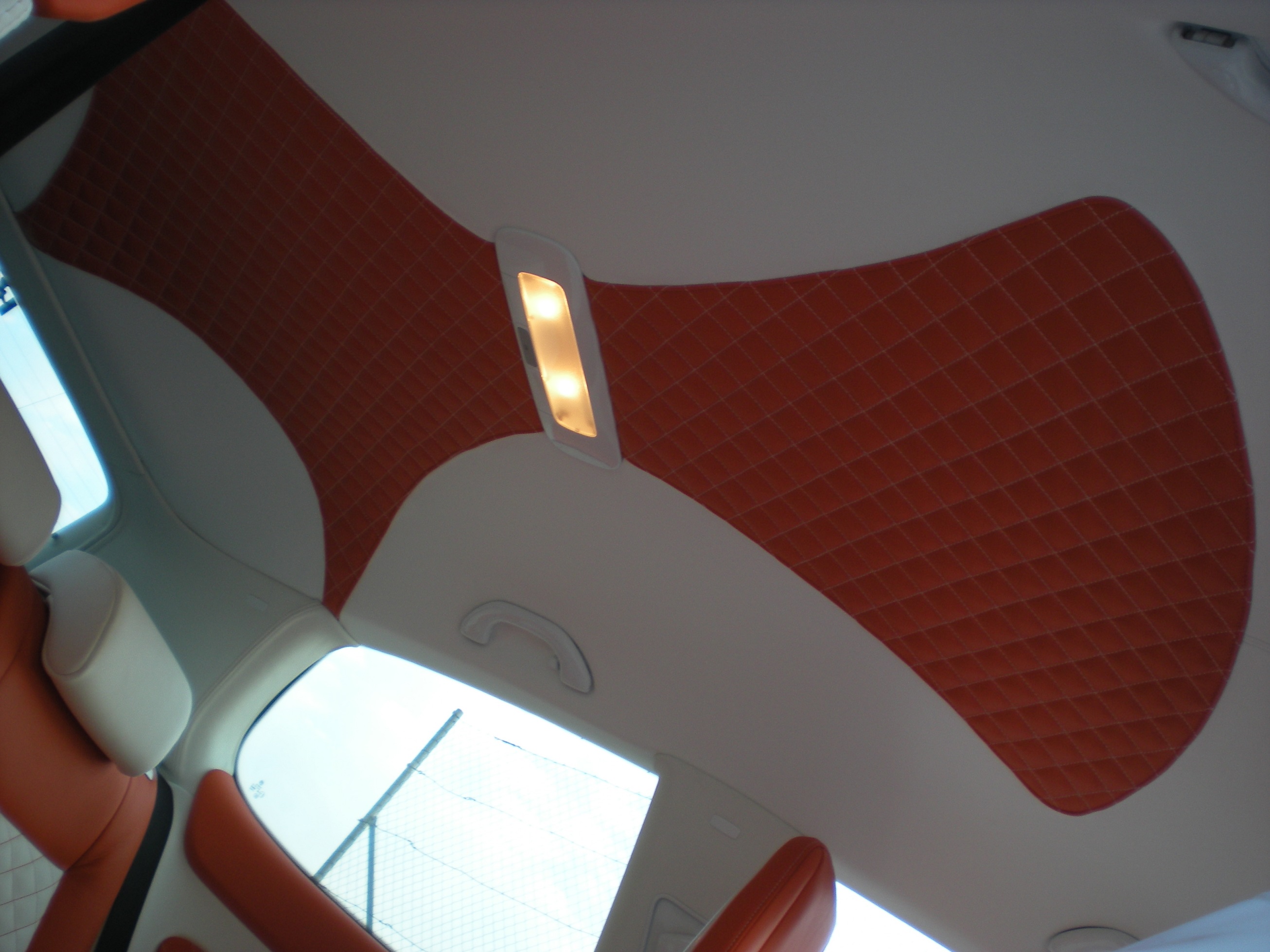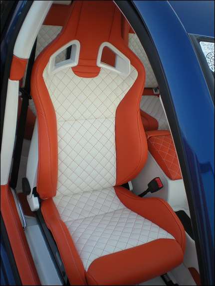 Der komplette Innenraum wurde mit weiss/orangen Leder überzogen, sehr gute Qualität und keine gebrauchsspuren