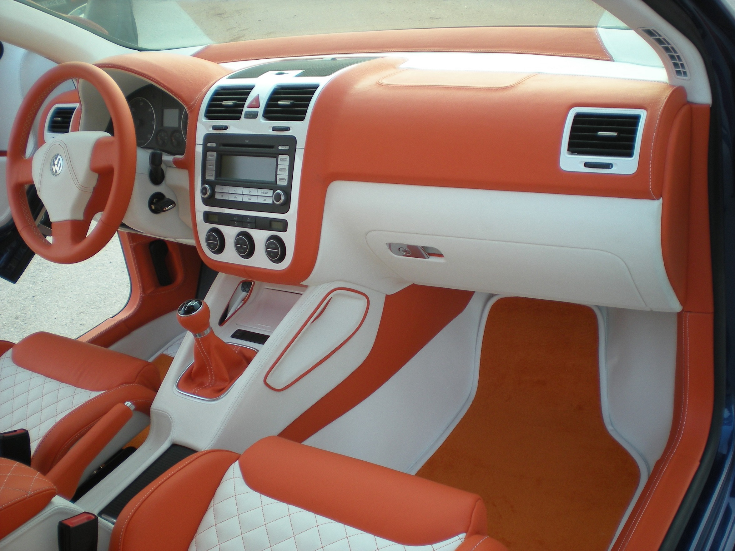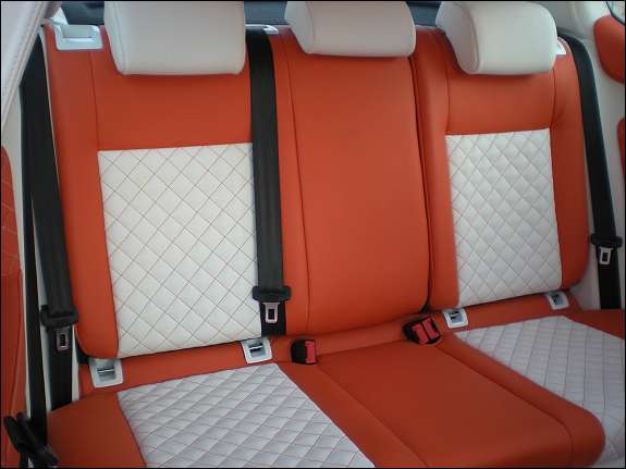 Der komplette Innenraum wurde mit weiss/orangen Leder überzogen, sehr gute Qualität und keine gebrauchsspuren