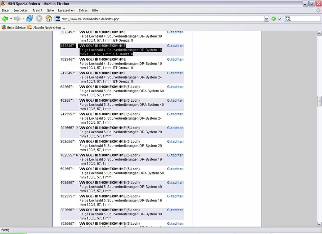 Spurverbreiterung auswählen