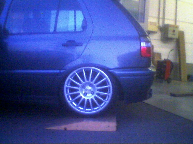 also ich hab ca. 6cm zwischen Reifen und Radkasten.Aber wenn ich zwei Leute auf die Ladekante vom Kofferraum setzen lasse geht das auto schon mächtig zusammen!!