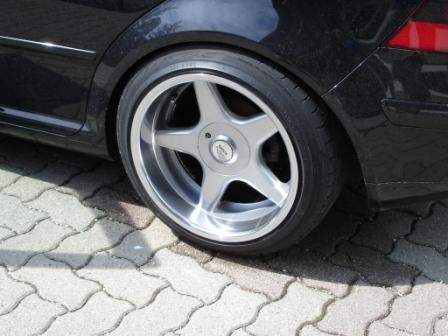 Letzte Saison hatte ich hinten auf 9,5J 18 zoll 275er Reifen und vorne auf der 8,5J 245er Reifen, das sah sehr gut aus und auch wirklich breit, nicht so Pseudo-breit weil die Felge um einiges breiter als der Reifen ist...