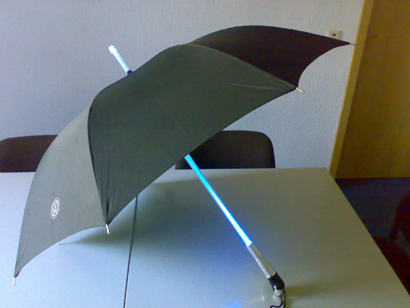 Apropos Regenschirm, seht mal,.. hab mir schon einen bestellt, original VW. Gibts aber leider nur in Deutschland. Blau beleuchtet. *GG*