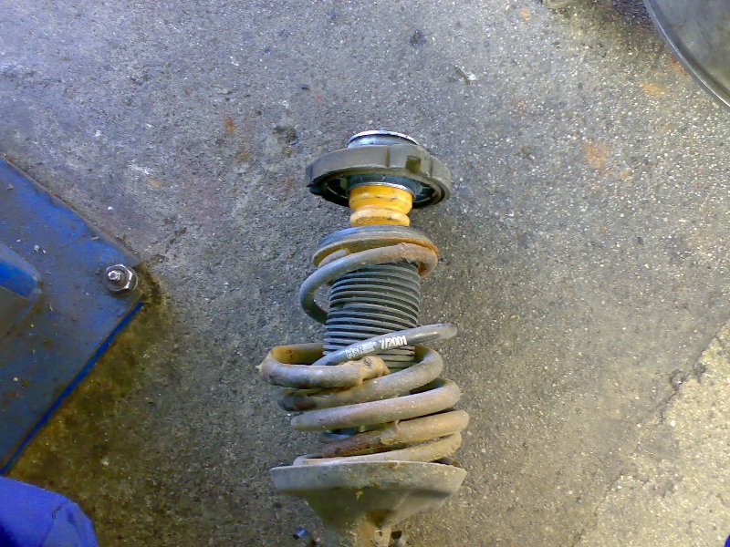 so wie ich es verstanden habe hast du das gewinde noch nicht drinn! also noch original federung, also nach dem alter des autos kanns sein das die feder hin is!