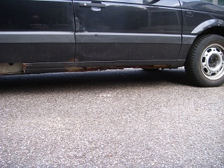 Der Passat ist innen bis auf das Armaturenbrett und den Fahrersitz komplett zerlegt da schon mit der Blechreperatur begonnen wurde (Die Rostigen Teile wurden schon rausgeschnitten.Siehe Bilder)aber dann festgestellt wurde das auch die hinteren Achsgummis kaputt sind und der Achsträger durchgerostet ist.
