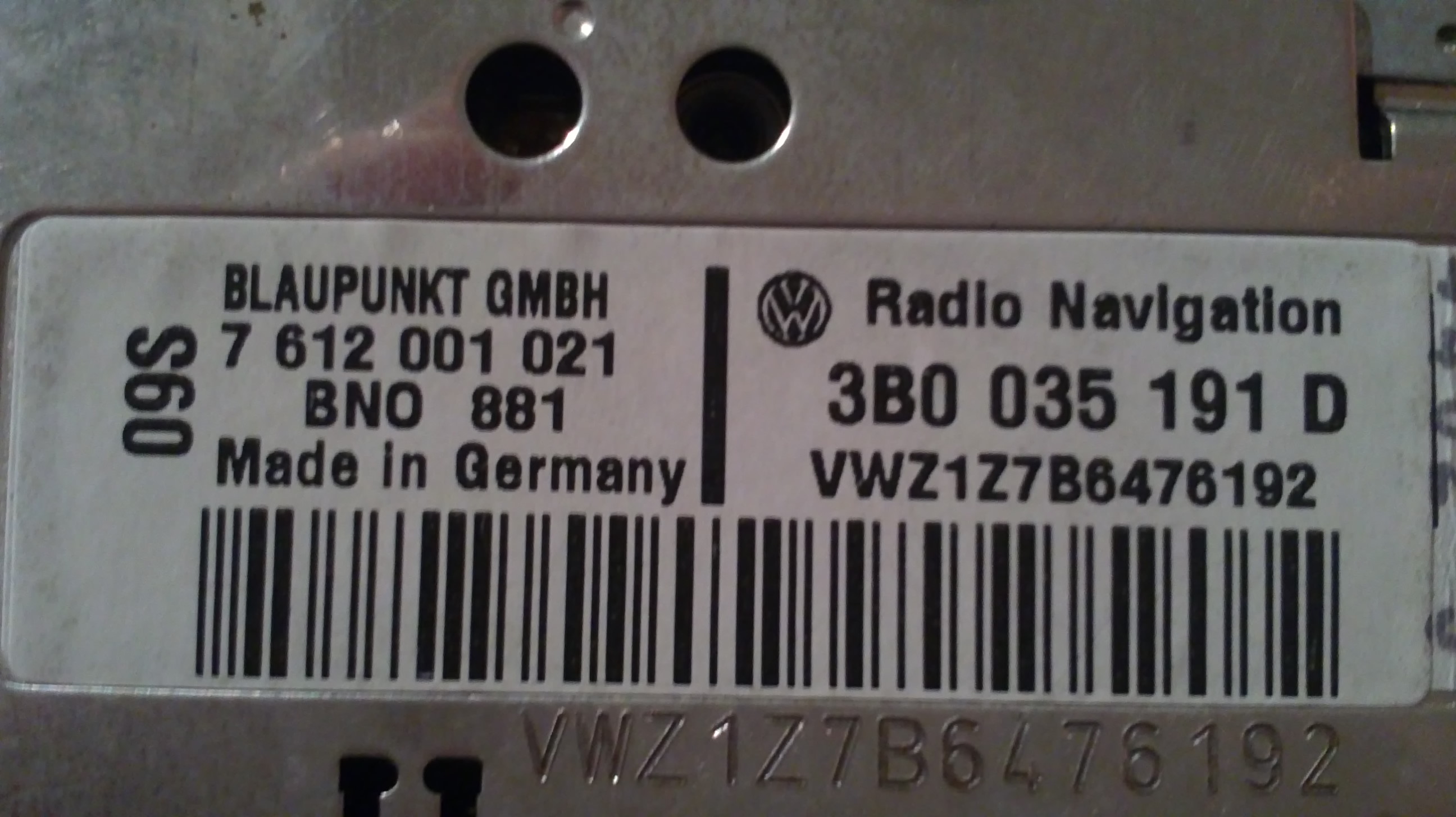 Radio Navigation 3B0 035 191 D VWZ1Z7B6476192 Blaupunkt GmbH, Made in Germany Index: J