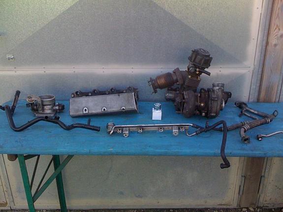 K24 7000 Lader aus S2, Krümmer schon umgebaut (glühend geschweisst) mit allenen Ölrohren und Wasserrohren vom S2, S2 Ansaugbrücke bereits abgeschnitten, Vr6 oder G60 Drosselklappe, S2 Hosenrohr, APX Einspritzleiste mit Druckregler (ohne Düsen), Golf 2 Wasserrohr neu mit anschluss für Turbokühlung, Einschweissstutzen für CO Poti, Verdichtungsreduzierungsplatte für 2L 16V, G60 Kabelbaum, Steuergerät, CO Poti und noch paar andre kleinteile.... VB 850€